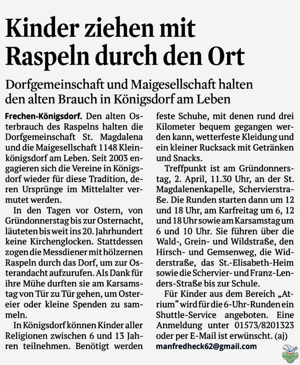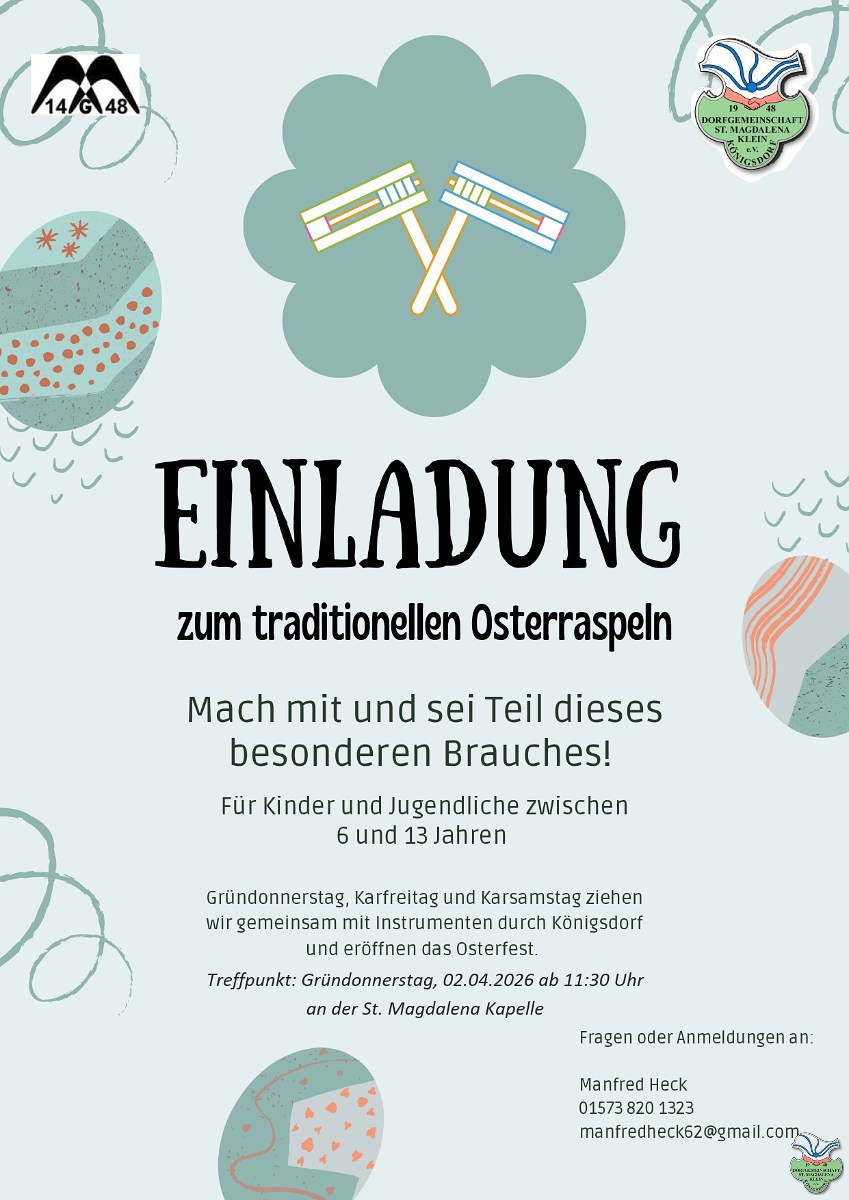 Informationen hierzu erteilt der Vorstand der Dorfgemeinschaft St. Magdalena 1948 Kleinkönigsdorf e.V.
